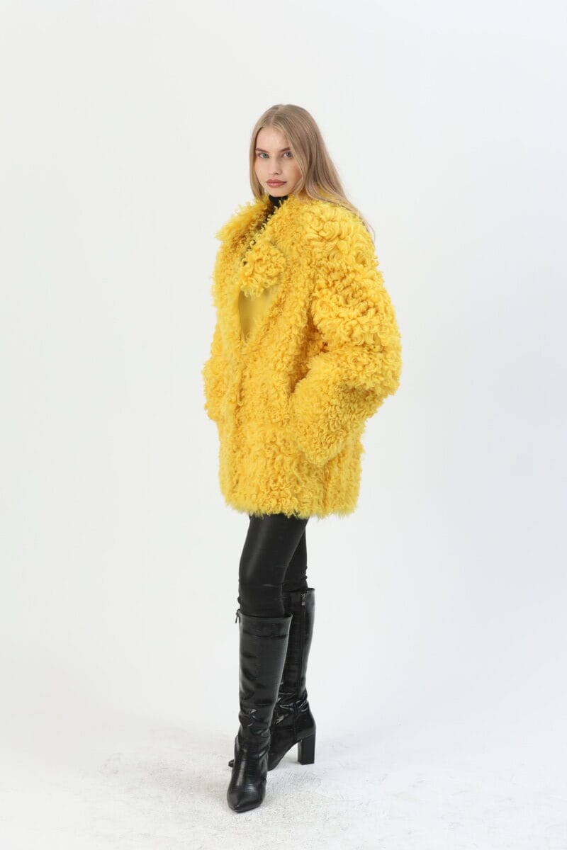 Our Acadia Shearling Coat is expertly crafted from high-quality Sheepskin and crafted with intensive handwork. If no customizations are requested, it will be shipped within 5 business days.
