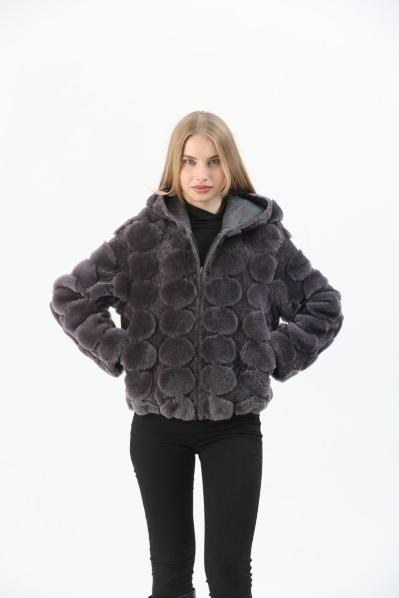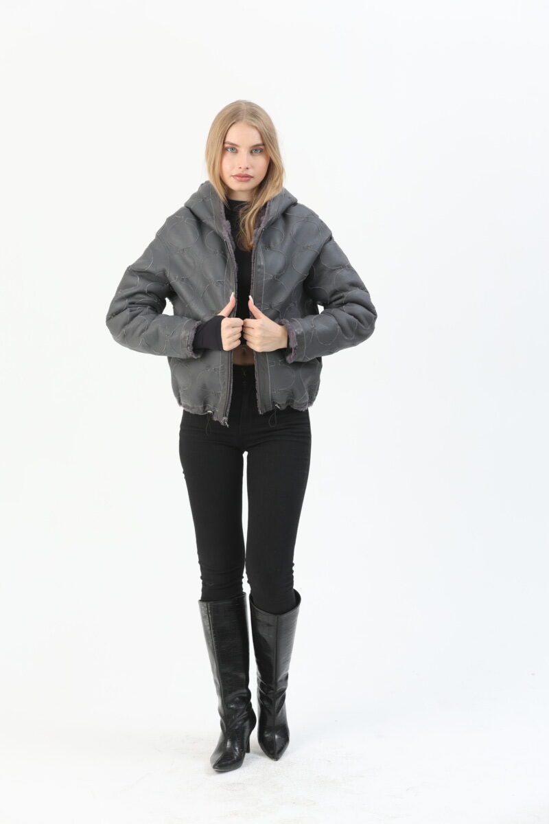 Reversible Hooded Zip Front Sheepskin Jacket