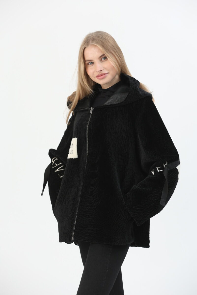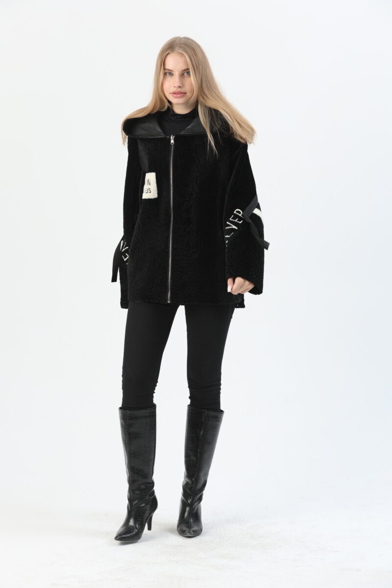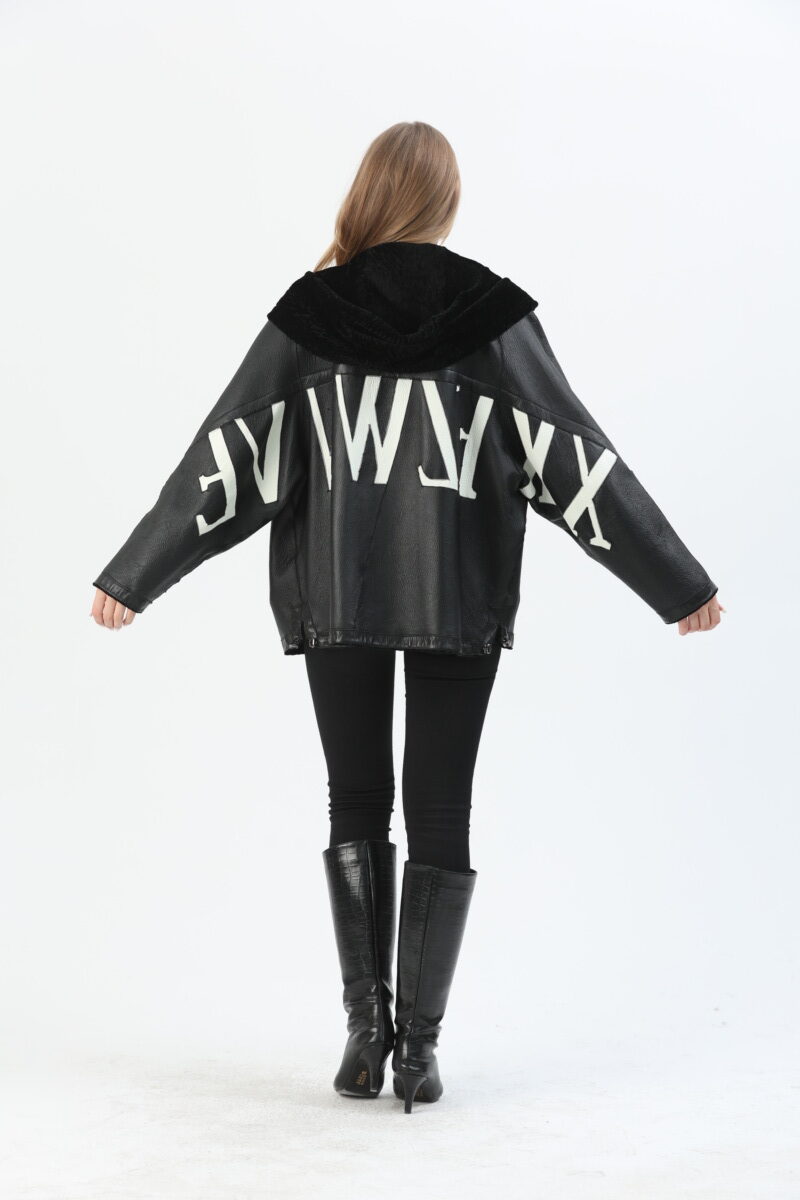 Reversible Hooded Zip-Up Sheepskin Leather Jacket