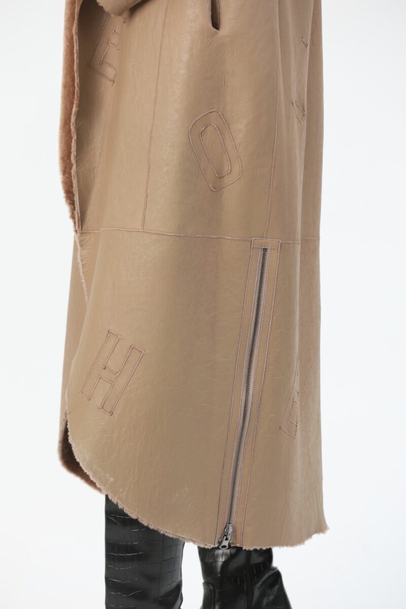 Sheepskin is the leather hide (the skin) of a sheep. “Shearling” (the wool) and “sheepskin” (the leather) are two sides of the same single pelt. This is why our reversible coats can be worn with the sleek leather side out or the plush wool side out.